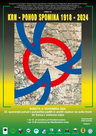 31.10.2024Organizacijski odbor Krn–pohod spomina 1918–2024 in Kobariški muzej skupaj s še drugimi soorganizatorji ob obletnici konca 1. svetovne vojne vabijo na 23. spominski pohod h Krnskemu jezeru in slovesnost v počastitev vseh padlih vojakov na soški fronti. Osrednja slovesnost bo v soboto, 9. novembra 2024, ob 12. uri pri Krnskem jezeru in ob 13:30 svečanost pri Madžarskem križu. Pohod k slovesnosti bo potekal iz smeri Lepene, v primeru dobrih in varnih razmer pa tudi iz Bohinja in Tolminske.